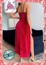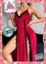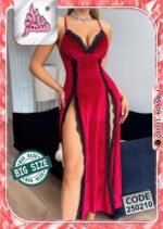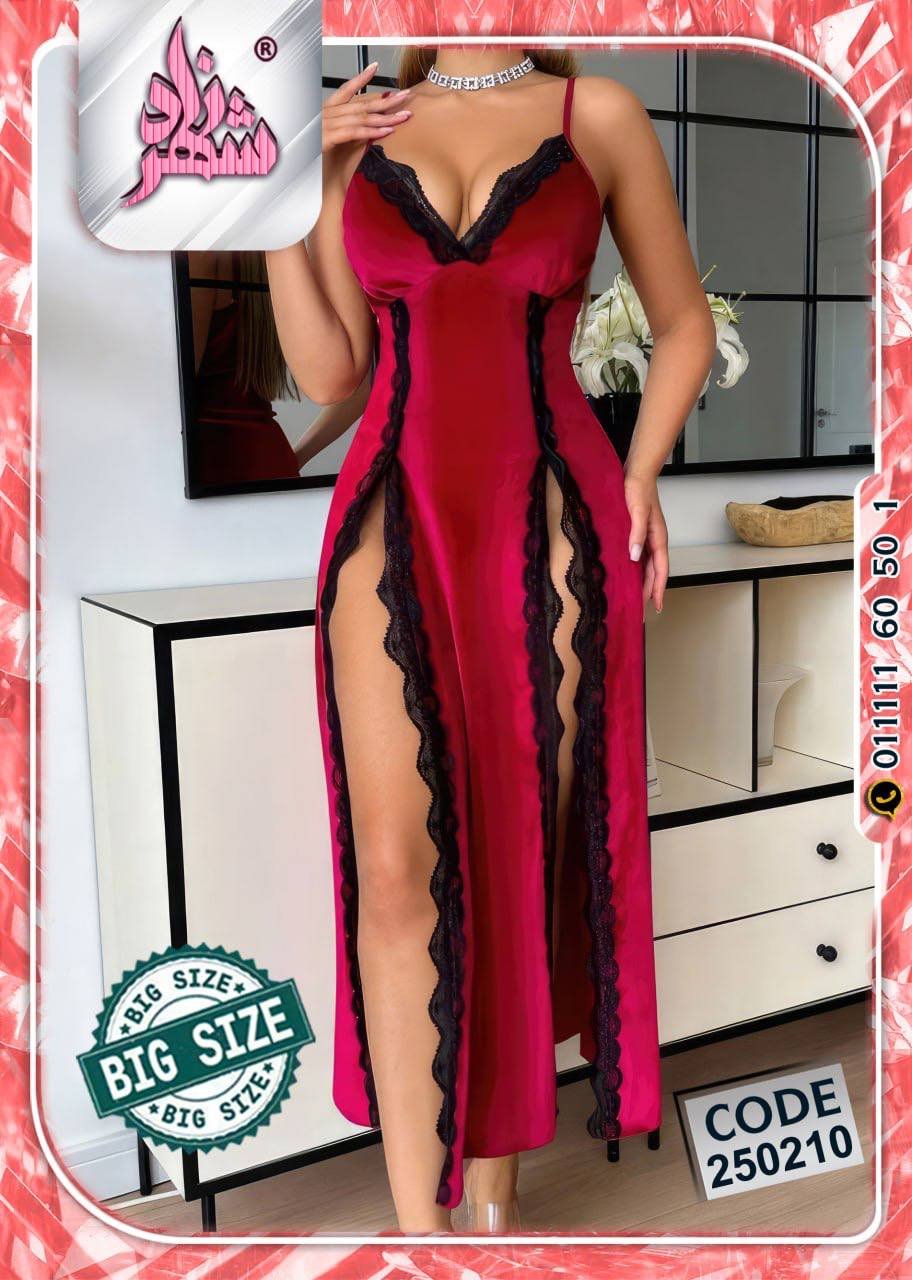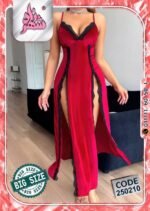 استمتعي بإطلالة تخطف الأنفاس مع هذا اللانجري الراقي من القطيفة الفاخرة بلونه الأحمر الجذاب ولمساته من الدانتيل الأسود الأنيق. تصميمه الطويل بشقين جانبيين يمنحك أنوثة طاغية وجاذبية ساحرة في كل حركة.