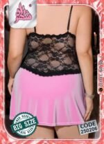 يتميز بقصّة قصيرة أنثوية تبرز جمال القوام، مع تفاصيل من الدانتيل الأسود تضيف لمسة من الغموض والإغراء الراقي.